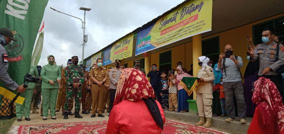Di lokasi pembukaan TMMD ke 110 Kodim 0415/Batanghari Tahun Anggaran 2021 di Pondok Pesantren Jauharul Falah Alislami rombongan langsung memasuki lokasi acara pembukaan.