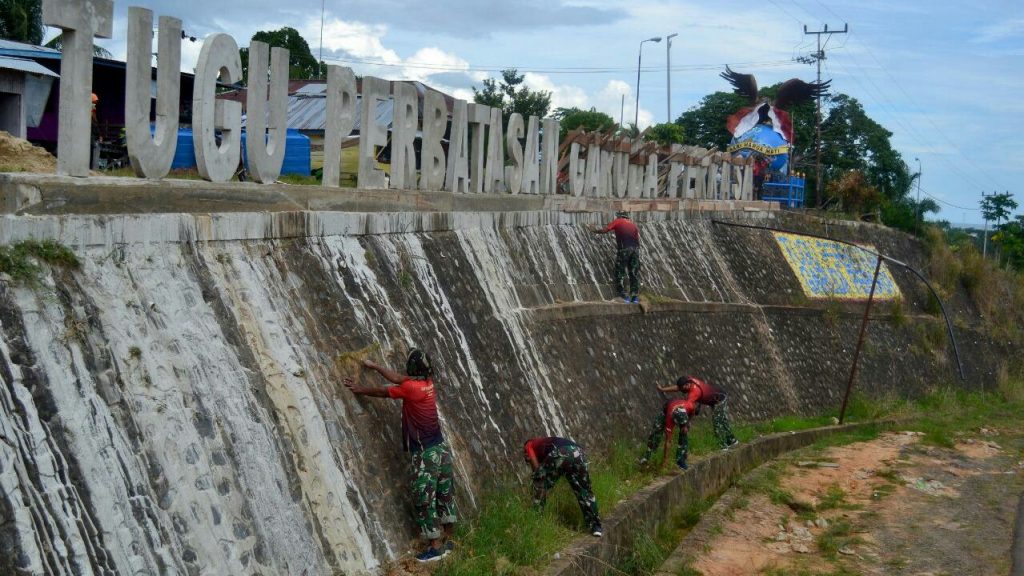 JAMBI – Prajurit Pasmar 2 Korps Marinir yang tergabung dalam Satgasmar Ambalat XXVI Pengamanan perbatasan RI-Malaysia BKO Guspurla Koarmada II melaksanakan perawatan monumen Tugu Garuda Perkasa di Desa Seberang, Kec. Sebatik Utara, Kab. Nunukan, Kalimantan Utara, Jum’at (01/01/2020).