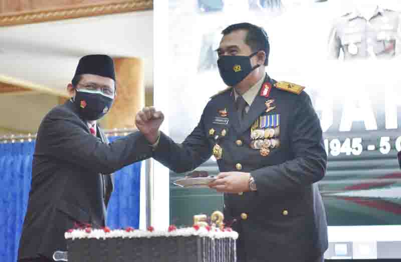 Mediajambi.com – Penjabat Sementara (Pjs) Gubernur Jambi, Restuardy (Ardy) Daud mengajak TNI untuk meningkatkan sinergitas dalam penanganan Covid-19. Pernyataan ini disampaikannya usai mengikuti HUT ke-75 TNI tahun 2020 secara virtual, Senin (5/10/2020), bertempat di Balai Prajurit Korem 042/GAPU. Komandan Korem 042/Gapu, Brigjen TNI M.Zulkifli,S.IP,MM tampak khidmat menjalani seluruh rangkaian kegiatan peringatan HUT TNI. Tampak pula hadir Kapolda Jambi, Ketua DPRD dan Forkompimda Provinsi Jambi lainnya. Pj.Sekretaris Daerah Provinsi Jambi, H.Sudirman,SH,MH juga hadir dalam acara tersebut.