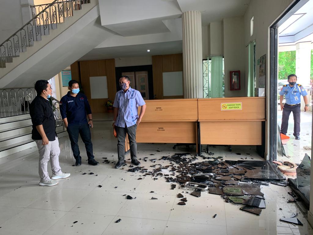 JAMBI- Gedung DPRD Kota Jambi dirusak oleh ratusan pelajar yang melakukan aksi demo. Beberapa fasilitas rusak seperti pagar, pot bunga dan kaca pintu masuk gedung DPRD Kota Jambi pecah, Rabu (7/10).