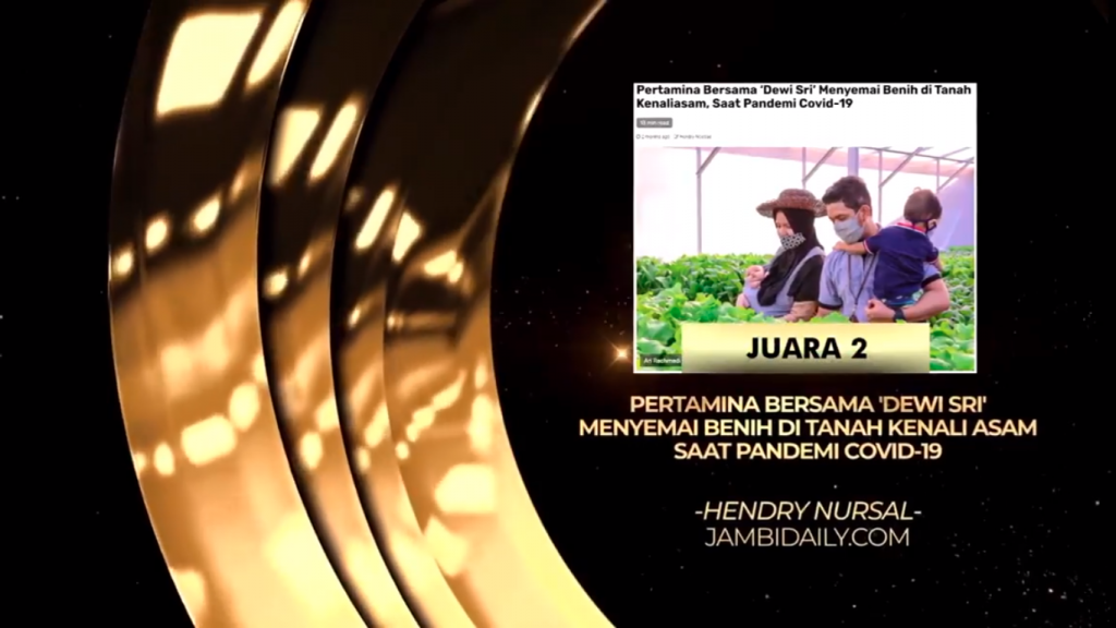 Juara 2: Hendry Nursal (Jambidaily.com), “Pertamina Bersama Dewi Sri Menyemai Benih di Tanah Kenali Asam, Saat Pandemi Covid-19