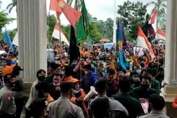 Mediajambi.com – Unjuk rasa ribuan mahasiswa di Jambi menolak Undang-Undang (UU) Omnibus Law Lapangan Cipta Kerja yang disahkan oleh DPR RI beberapa waktu lalu di Jambi ricuh. Polisi terpaksa menembakkan gas air mata dan water cannon ke pendemo, digedung DPRD Provinsi Jambi, Kamis (8/10/2020).
