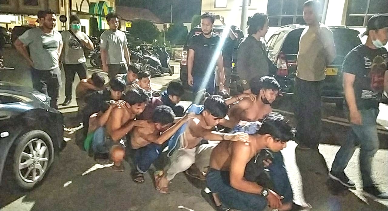 “Jumlah mereka ini sangat banyak, dan ada 12 pria yang kita amankan, pelaku ini diduga komplotan geng motor yang menggunakan senjata tajam dan kayu serta petasan untuk menyerang warga,” ujarnya.
