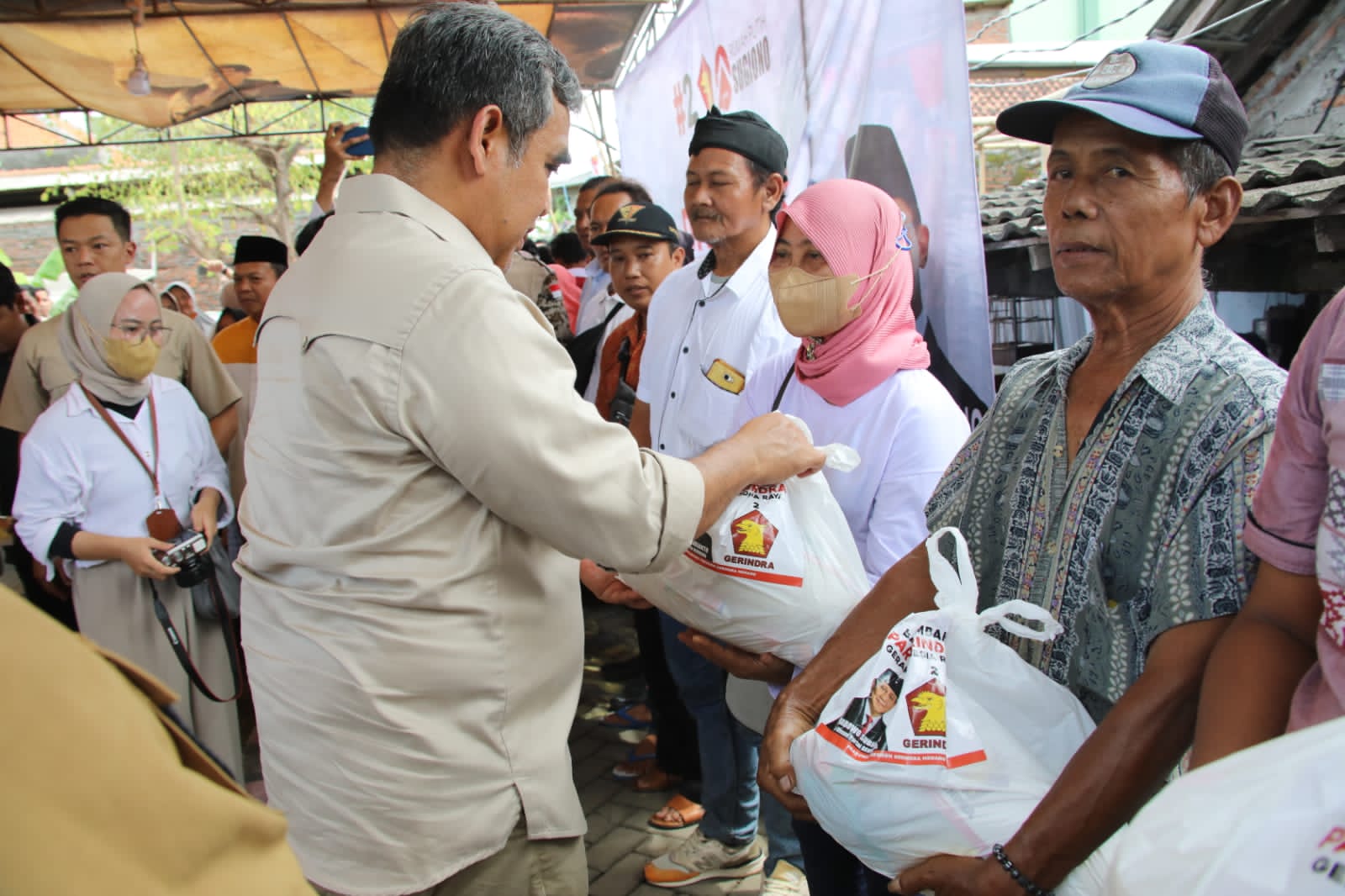 SEMARANG— Partai Gerindra menyalurkan bantuan berupa sembilan bahan pokok pangan (sembako) ke sejumlah titik di wilayah Jawa Tengah, Minggu (8/1/2023).