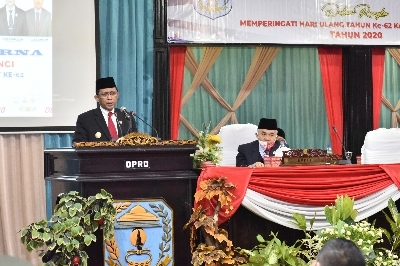 Mediajambi.com – Penjabat sementara (Pjs) Gubernur Jambi, Restuardy Daud mengemukakan bahwa potensi pertanian dan pariwisata harus bisa meningkatkan kemajuan dan daya saing daerah Kabupaten Kerinci. Hal tersebut dikemukakan Ardy Daud pada Rapat Paripurna Dewan Perwakilan Rakyat Daerah (DPRD) Kabupaten Kerinci dalam rangka Peringatan Hari Ulang Tahun (HUT) ke-62 Kabupaten Kerinci Tahun 2020, yang berlangsung di Ruang Rapat Paripurna Gedung DPRD Kabupaten Kerinci, Senin (9/11/2020).