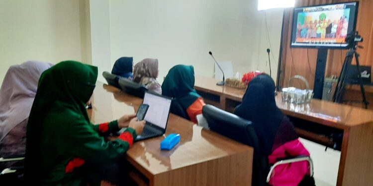 SIBERINDO.CO- Perwakilan pengurus dan nggota Dharma Wanita Persatuan (DWP) Kanwil Kementerian Agama Provinsi Jambi mengikuti Webinar Halal Bi Halal dan Peringatan Hari Kartini 2023 Dharma Wanita Persatuan Kementerian Agama RI secara daring pada Selasa (9/5) dari salah satu ruang pertemuan di kantor.