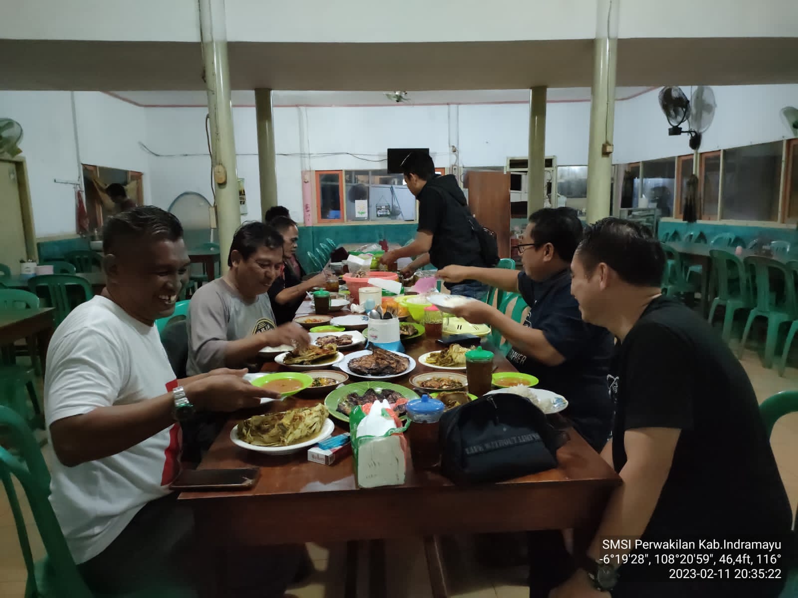 Didampingi Ketua SMSI Perwakilan Indramayu dan sejumlah pengurus, Ketum SMSI Pusat bersama Sekretaris SMSI Propinsi Jawa Barat, menyempatkan diri untuk menikmati suguhan Gombyang Manyung, di salah satu rumah makan Indramayu, Sabtu (11/2/2023) malam.