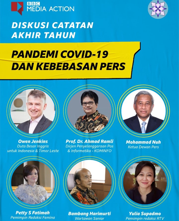 Dan sekarang, bekerjasama dengan BBC Media Action, menyelenggarakan serangkaian webinar, mulai hari ini hingga di awal 2021, yang akan membahas masalah kebebasan pers di masa pandemi. Selain itu, juga membahas upaya mengatasi kesalahan informasi dan disinformasi, seputar distribusi vaksin. Dan menindaklanjuti hal ini, dengan serangkaian pelatihan dan workshop yang relevan, untuk teman-teman media.