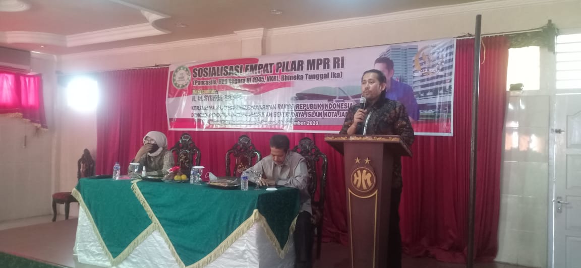 IMCNews.ID, Jambi – Anggota DPD RI, M Syukur mensosialisasikan empat pilar kebangsaan kepada Himpunan Seni Budaya Islam (HIBSI) Jambi di Hotel Matahari I, Simpang Pulai, Kamis (12/11/2020).