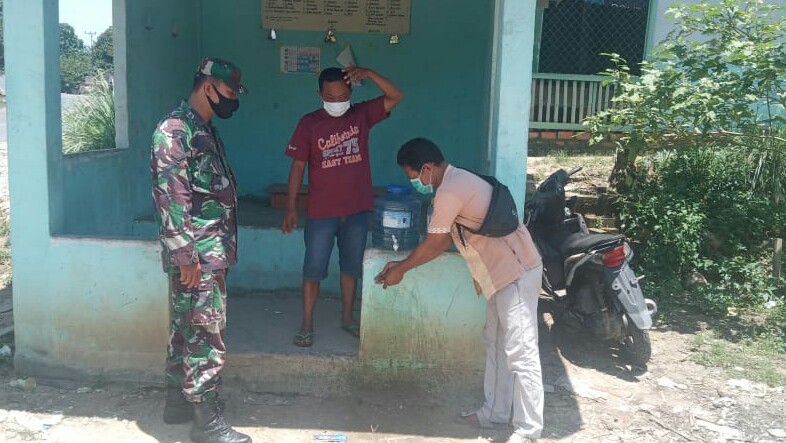 Cegah Covid-19, Relawan Bersama Babinsa Badang Sepakat Cek Suhu Tubuh Warga Masuk Desa