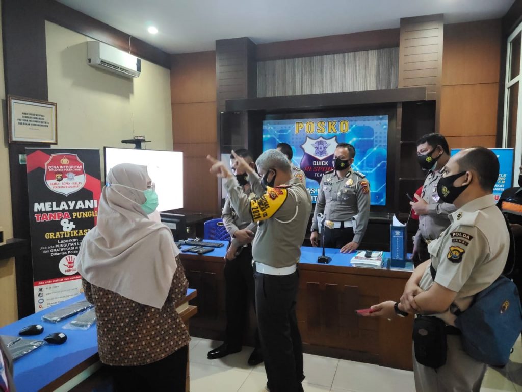 JAMBI-Ditlantas Polda Jambi – Team dari Kementrian PAN RB RI berkunjung melaksanakan verifikasi lapangan tindaklanjut desk evaluasi Zona Integritase Ditlantas Polda Jambi dari WBK menuju WBBM, Senin (14/12/2020) sekira pukul 08.00 Wib.
