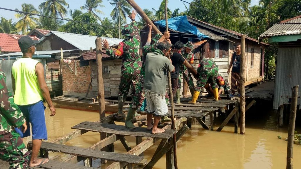 JAMBI– Upaya membangun kerjasama antara masyarakat dengan TNI telah dilaksanakan oleh anggota Koramil 04/Nipahpanjang, Kodim 0419/Tanjab dengan ikut turun tangan langsung membantu warga membangun jembatan yang sudah lama rusak di Kelurahan Nipahpanjang 2 Kecamatan Nipahpanjang, Kabupaten Tanjab Timur, Senin (14/12/2020).