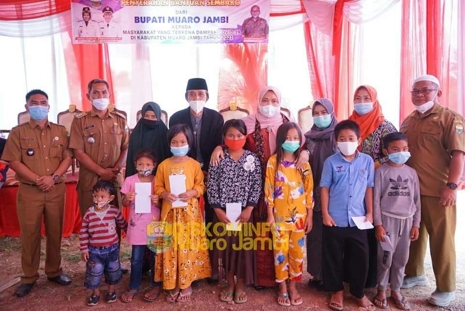SENGETI – Bupati Muaro Jambi Masnah Busyro memberikan bantuan sembako kepada masyarakat dan sekaligus menyantuni anak yatim. Acara dilaksanakan di Desa Sipin Teluk Duren Kecamatan Kumpeh Ulu, Senin Pagi (15/02/2021).