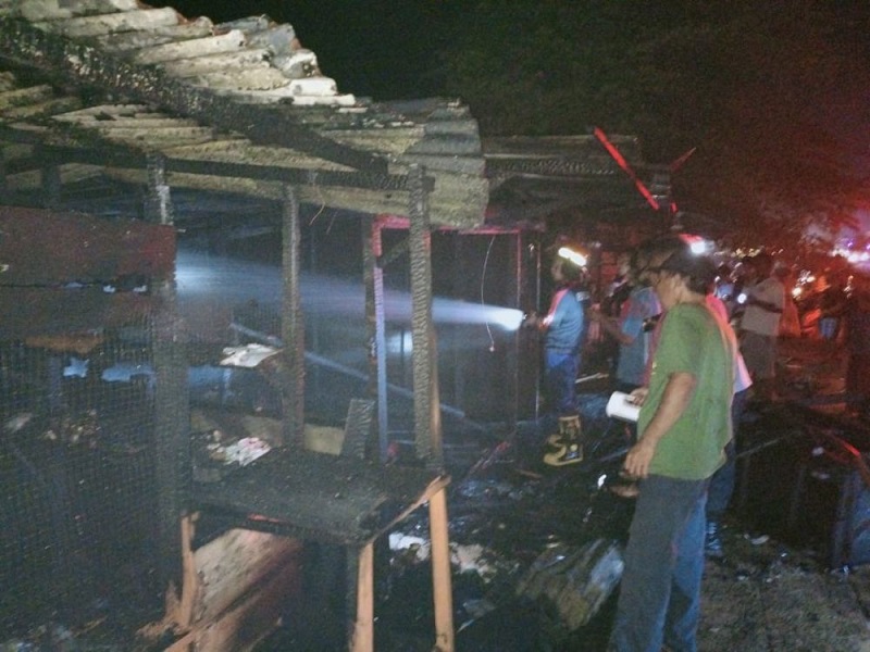 “Diperkirakan api mulai menyala sekira pukul 22.20 WIB, dan dengan cepat meratakan kios”, katanya.