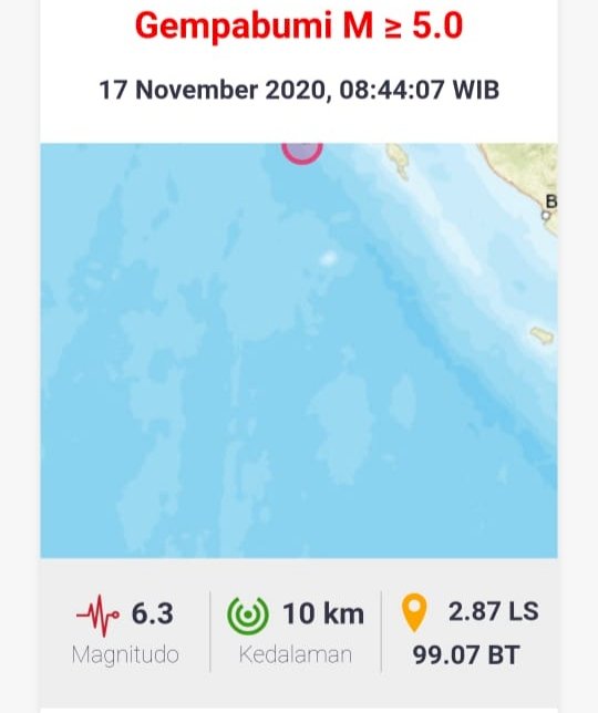 IMCNews.ID, Jambi – Gempa bumi dengan magnitudo 6,3 mengguncang wilayah Sumatera Barat pada Selasa (17/11/2020) pukul 08.44.07 WIB.