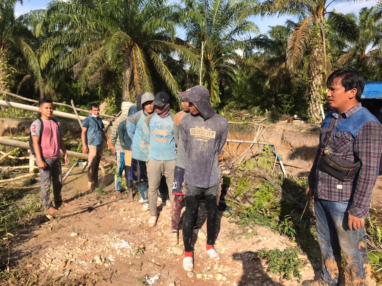 Ada 6 (enam) orang pekerja yang ditangkap. Sementara itu saat tim sedang mengamankan para pelaku datang seorang laki-laki dengan inisial P (45) mengaku pemilik dari alat-alat dompeng.