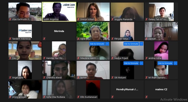 Ini adalah bagian ketiga sesi zoom untuk mempromosikan pembelajaran bahasa asing di Indonesia. Tandem-Indonesia. Satu hal yang baik kedepannya yang terbaca dari acara ini adalah interview dengan salah satu pembicara, yang terekam pada bulan September 2020 https://tandem-i.com/index.php/testimonials-for-studying/.