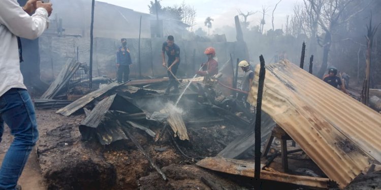 Sebuah rumah diduga gudang penyimpanan minyak illegal ludes terbakar. Kepulan asap hitam membumbung tinggi saat kejadian.