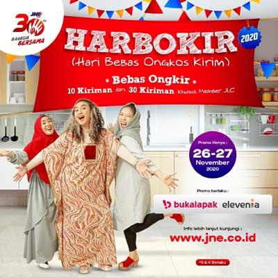 Harbokir pun juga dapat dinikmati oleh masyarakat yang berbelanja di online marketplace Bukalapak dan Elevania. Selain itu pengguna dompet digital Gopay pun juga bisa mendapatkan cashback sebesar Rp 10.000 dengan minimal transaksi kiriman Rp 100.000,- promo ini juga berlaku pada 26 – 27 November 2020.