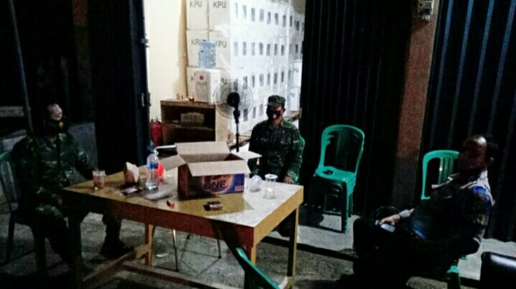 Lebih lanjut, Danramil memerintahkan Babinsanya untuk melakukan penjagaan di gudang KPU secara bergantian. Tentunya pengamanan secara terpadu bersama Polri dan Personel dari KPU itu sendiri.