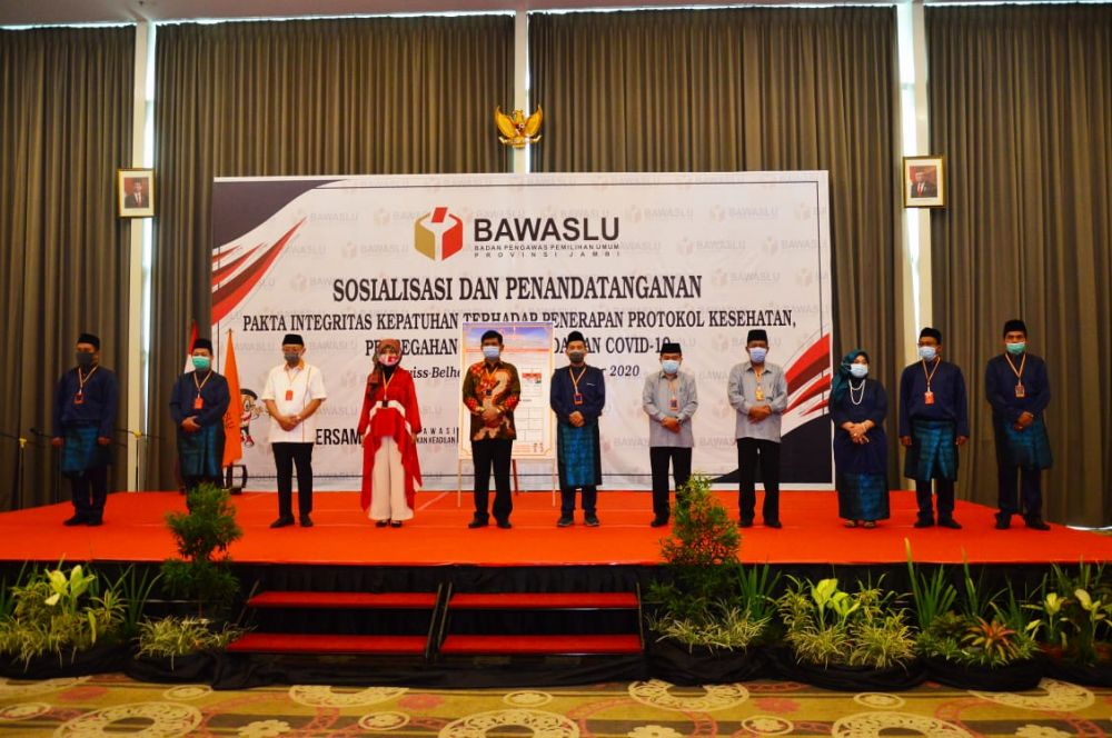 Dalam sambutannya, Ketua Bawaslu Provinsi Jambi Asnawi R, M.Pd mengatakan, penandatangan fakta integritas adalah bentuk upaya pencegahan dan penegakkan hukum penerarapan protokol Kesehatan dalam penyelenggaraan Pilkada serentak tahun 2020, khususnya di Provinsi Jambi.