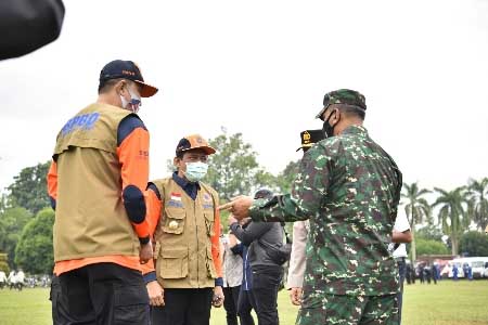 Mediajambi.com – PJS Gubernur Jambi, Ir Restuardy Daud MSc melakukan gerak cepat pasca Apel Gabungan Kesiapsiagaan Tanggap Darurat Menghadapi Bencana Hidrometeorologi (banjir, longsor dan angin puting beliung), Provinsi Jambi Tahun 2020. Didampingi Kapolda Jambi, Irjen Pol.Firman Shanthyabudi dan Danrem 042 Garuda Putih, Brigjen TNI M.Zilkifli, Restu langsung meninjau debit air Sungai Batanghari menggunakan perahu motor, Senin (26/10/20).