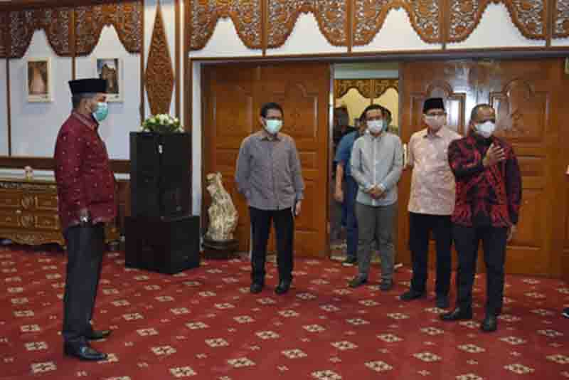 Mediajambi.com – Penjabat Sementara (Pjs) Gubernur Jambi, Restuardy Daud melakukan silahturahmi ke Rumah Dinas Ketua DPRD Provinsi, Minggu (27/09) malam. Pada kesempatan tersebut, Penjabat Sekretaris Daerah (Pj.Sekda) Provinsi Jambi, H Sudirman turut mendampingi Restuardy.