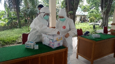 Pemeriksaan kepada seorang bapak berusia 60 berakhir harus berobat dulu. “Bapak belum bisa divaksin karena tekanan darahnya tinggi. Berobat dulu ke depan (bagian pengobatan Puskesmas) nanti dikasih obat sama dokter disana,” saran perawat.