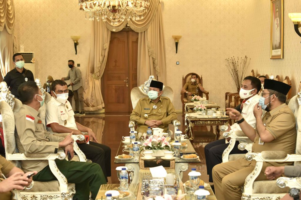 JAMBI – Gubernur Jambi Dr.Drs.H.Fachrori Umar,M.Hum, menerima kunjungan kerja Kementerian Koordinator Politik Hukum dan Keamanan dalam rangka Rembuk dan Aksi Nyata Gerakan Indonesia Tertib di Rumah Dinas Gubernur Jambi, Senin (28/12/20).