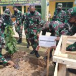 JAMBI– Danrem 042 Garuda Putih, Brigjen TNI M Zulkifli melakukan penanaman pohon buah jenis alpukat, saat pembukaan TMMD ke 110 Kodim 0415/Batanghari