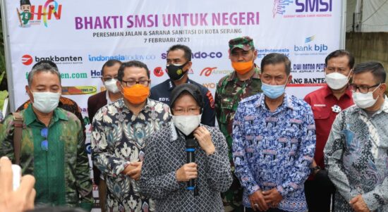 Serang – Menteri Sosial Tri Rismaharini mengapresiasi langkah kemanusiaan Serikat Media Siber Indonesia dalam rangka Hari Pers Nasional (HPN) tahun 2021 di