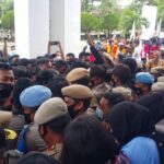 Protes UU Ciptaker Di Gedung DPRD Merangin Diwarnai Saling Dorong, Antara Aparat Dengan Peserta Aksi