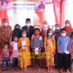 SENGETI – Bupati Muaro Jambi Masnah Busyro memberikan bantuan sembako kepada masyarakat dan sekaligus menyantuni anak yatim. Acara dilaksanakan di Desa Sipin