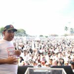 Sekjen Partai Gerindra Ahmad Muzani menghadiri acara jalan sehat dan pesta rakyat yang digelar oleh DPD Gerindra Lampung, di Stadion Pahoman, Minggu