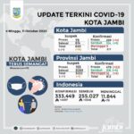 Mediajambi.com – Jumlah kasus terkonfirmasi Covid-19 di Kota Jambi hingga tanggal 11 Oktober 2020 berjumlah 317 orang. Sebanyak 104 diantaranya sembuh. Juru