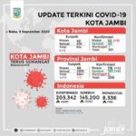 Mediajambi.com- Data Update Perkembangan Kondisi Terkini Covid-19 Kota JambiJumlah kasus terkonfirmasi positif Covid-19 di Kota Jambi s.d. tanggal 9 September 2020 berjumlah
