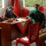 JAMBI- Pendisiplinan protokol kesehatan (Prokes) dilakukan langsung oleh Danramil Koramil 416-04/Pulau Temiang Kapten Inf Agussari saat memantau penyaluran bantuan jaring pengaman sosial