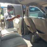 JAMBI – Untuk mencegah terjadinya penyebaran virus corona (covid-19), travel PO Mersi melakukan penyemprotan disinfektan pada setiap armada yang akan berangkat. Pengurus